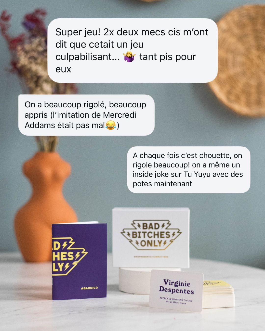 Dans ce pack, retrouve le jeu de cartes féministe Bad Bitches Only et sa version #Geek Legends qui se concentre sur les icônes de la culture geek.
