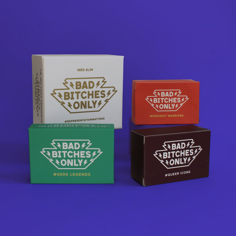 Dans ce Super Pack, retrouve le jeu Bad Bitches Only, la version #Feminist Warriors avec des militant·e·s féministes, la version #Queer Icons avec des icônes LGBTQIAP+ et la nouvelle version #Geek Legends avec des incontournables de la planète geek.